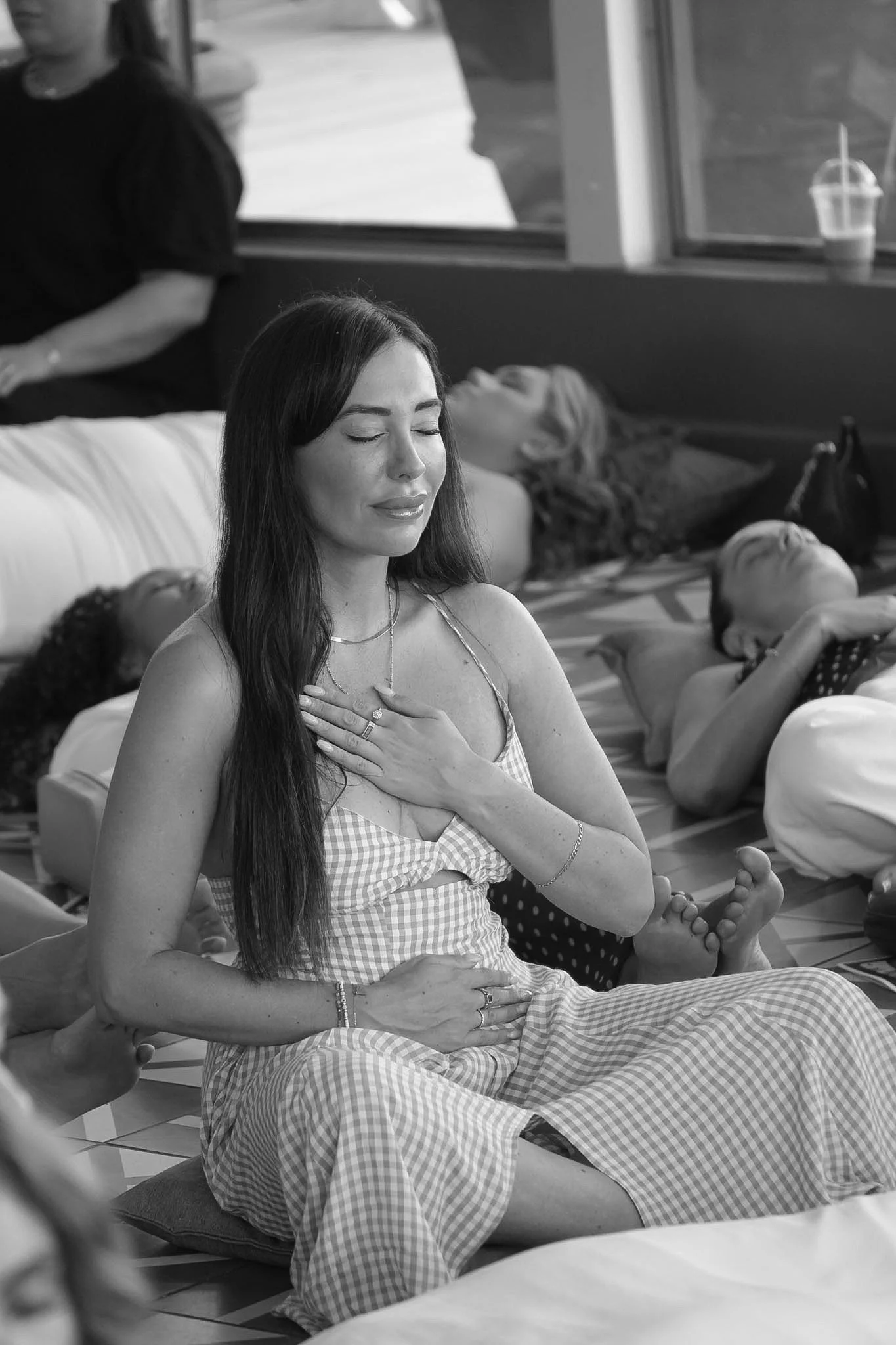 Women relaxing into themselves.